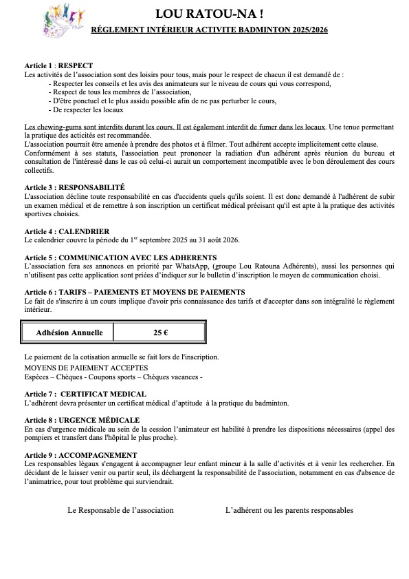 INSCRIPTIONS SUR PLACE AVANT LES COURS